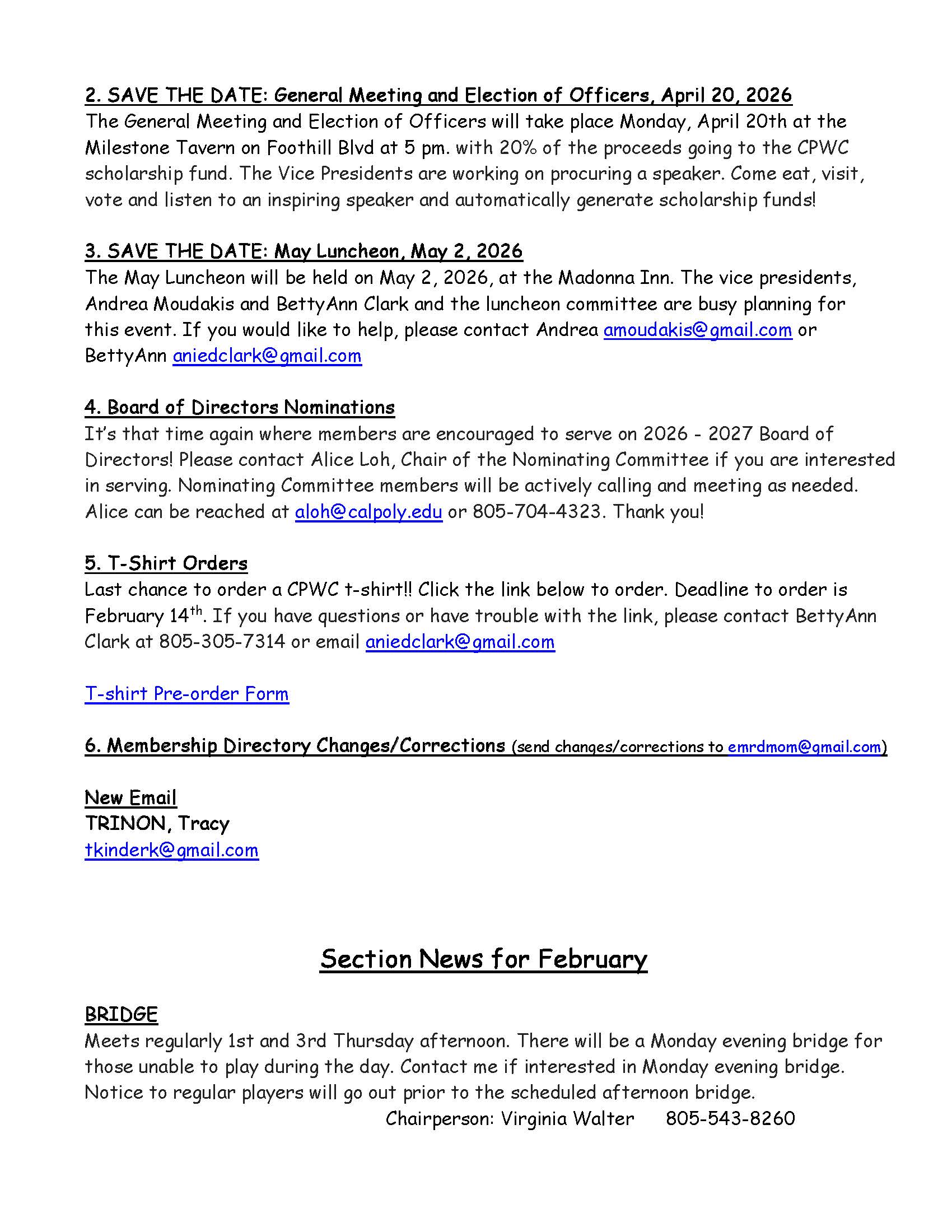 Donations & Membership checks to CPWC,Box 1284,San Luis Obispo, Ca 93406